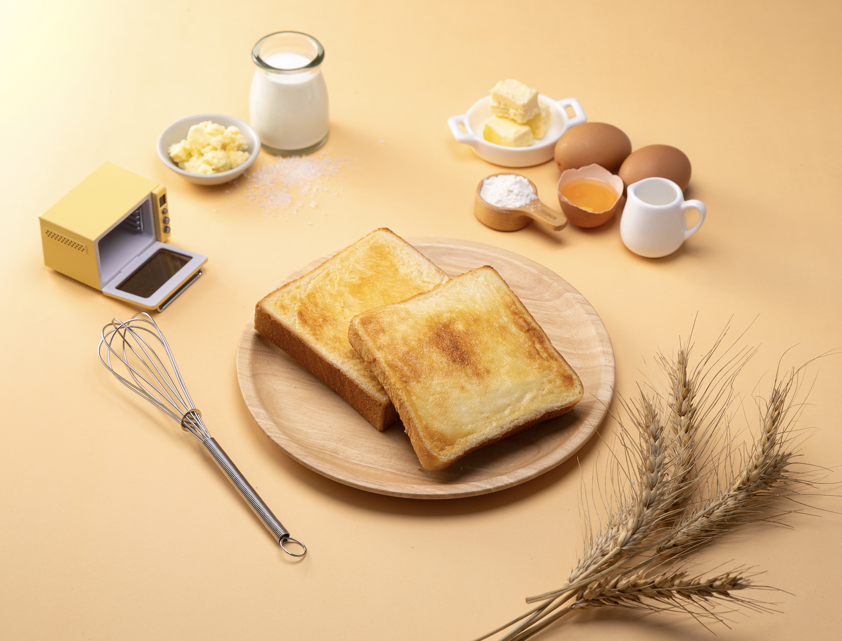 台灣小麥從收割到製粉的時間短,減少長途運輸與儲存時間,保留更多自然麥香。製作成生吐司後,能感受到細緻且清新的穀物香氣。