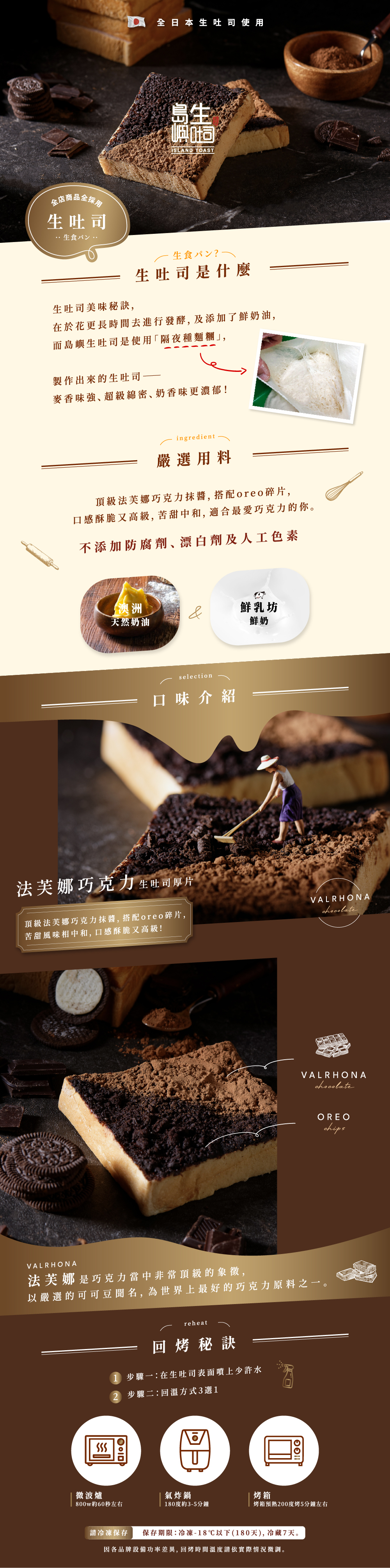 頂級法芙娜巧克力抹醬,搭配oreo碎片,口感酥脆又高級,苦甜中和,適合最愛巧克力的你。